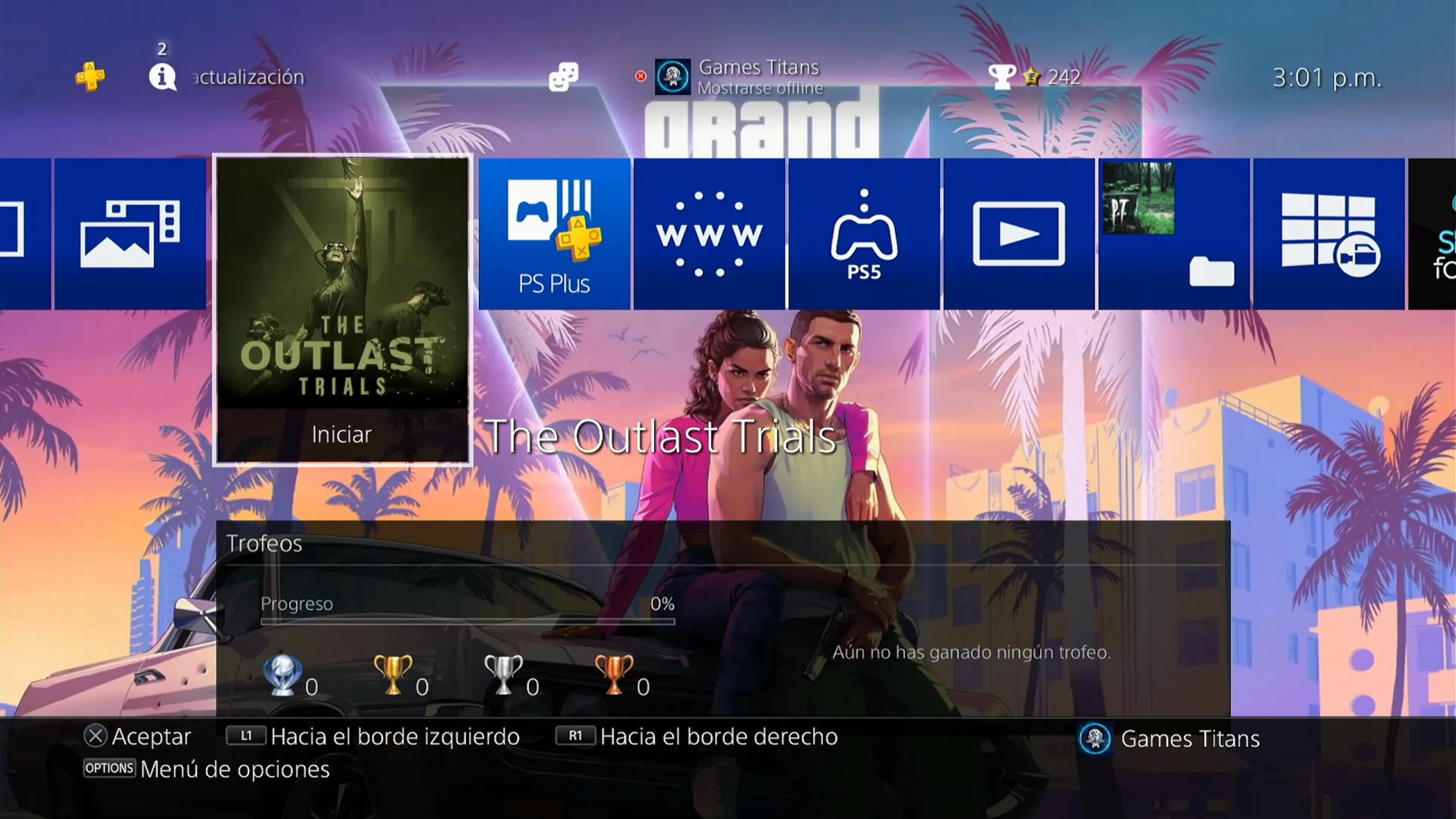 Podrás ver claramente el tiempo que se ha jugado en tu perfil personal y si se han obtenido trofeos. Por ejemplo, en nuestro perfil de PS5 se muestran “9 trofeos obtenidos”, mientras que en PS4 “ aun no se han obtenido trofeos”. Lo mismo aplica para ambas consolas, donde podrás comprobar tu progreso y logros en la cuenta.